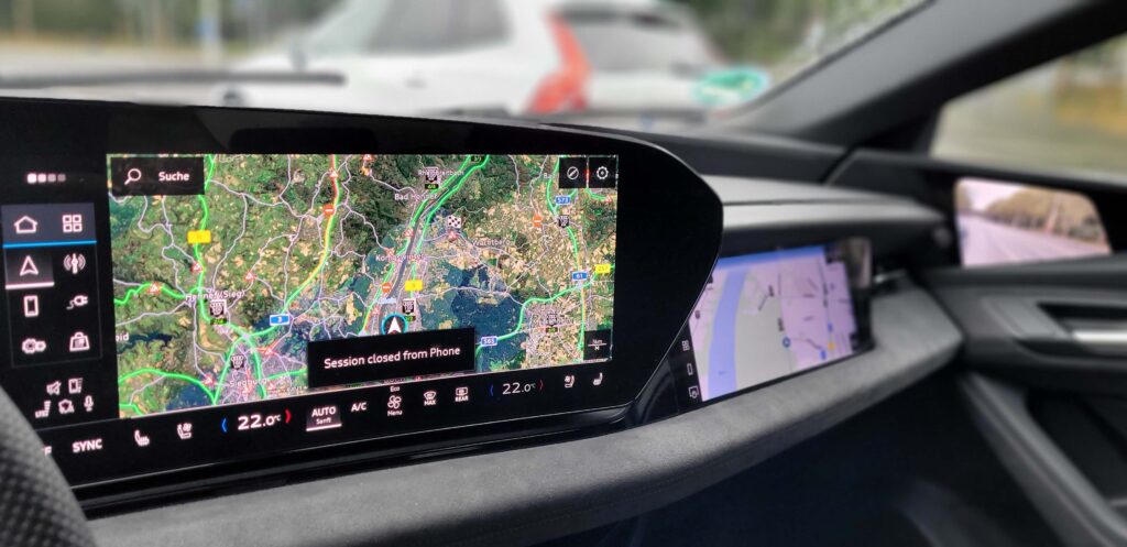 Der Innenraum des S6 e-tron ist so futuristisch wie der Wagen selbst. Zwei OLED-Displays dominieren das Cockpit, die nicht nur blitzschnell reagieren, sondern auch visuell einen echten Wow-Effekt erzeugen. Die Bedienung über diese Displays funktioniert intuitiv und schnell – eine klare Verbesserung im Vergleich zu früheren Audi-Generationen. Die Sprachsteuerung sorgt für zusätzlichen Komfort, und das digitale Cockpit bleibt dabei immer klar strukturiert. Das neue Bedienfeld in der Fahrertür fühlt sich haptisch sehr gut an. Statt echter Tasten gibt es berührungsempfindliche Symbole auf Kunststoff.