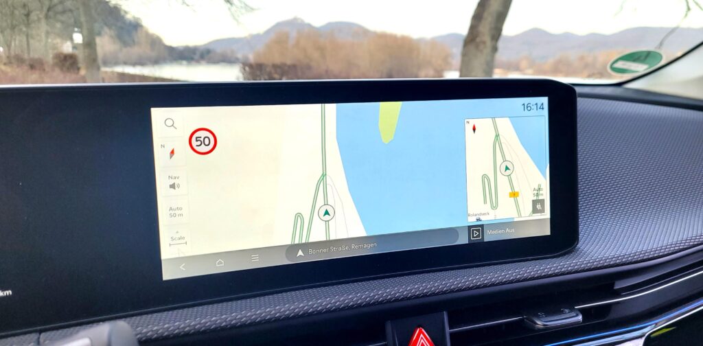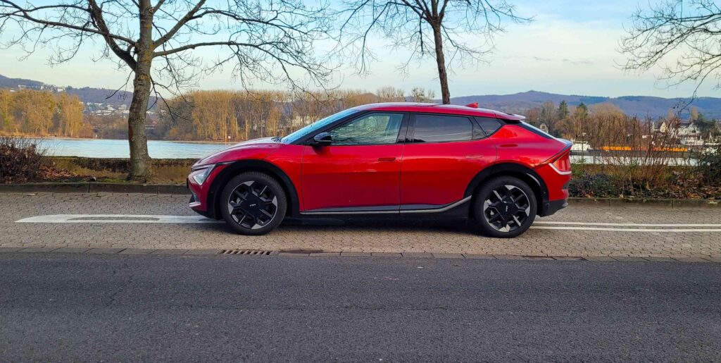 Auf der Landstraße zeigt sich der EV6 von seiner dynamischen Seite. Die Lenkung reagiert direkt und präzise, ohne nervös zu wirken. Kurven meistert der Crossover stabil und sicher, während das adaptive Fahrwerk Unebenheiten sanft abfedert. Hier spürt man die Harmonie zwischen Sportlichkeit und Komfort: Jede Fahrt vermittelt Sicherheit, Kontrolle und Fahrspaß zugleich. Auf der Autobahn überzeugt der EV6 durch Laufruhe und Übersicht.