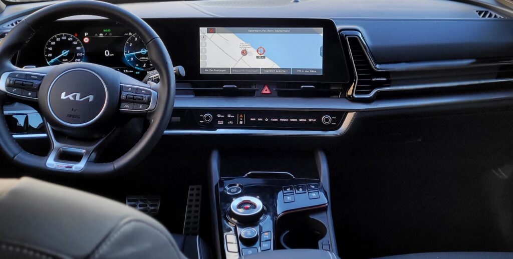 Der Kia Sportage besitzt ein modernes und komfortables Interieur, das sowohl Funktionalität als auch Stil vereint. Das Armaturenbrett ist ergonomisch gestaltet und kombiniert hochwertige Materialien mit einem modernen Layout. Die Verwendung von Soft-Touch-Oberflächen sorgt für ein angenehmes Gefühl. Der Sportage verfügt über ein digitales Kombiinstrument, das wichtige Fahrdaten klar und übersichtlich anzeigt.